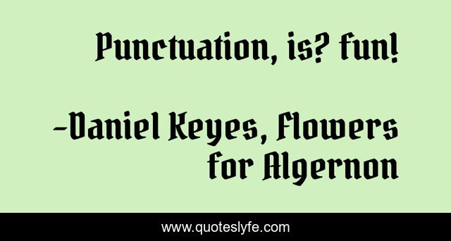 "Daniel Keyes, Flowers for Algernon Quotes." Quoteslyfe.com, 2025. Sun. 07 Dec. 2025. <https://www.quoteslyfe.com/quote/Punctuation-is-fun-6563>.