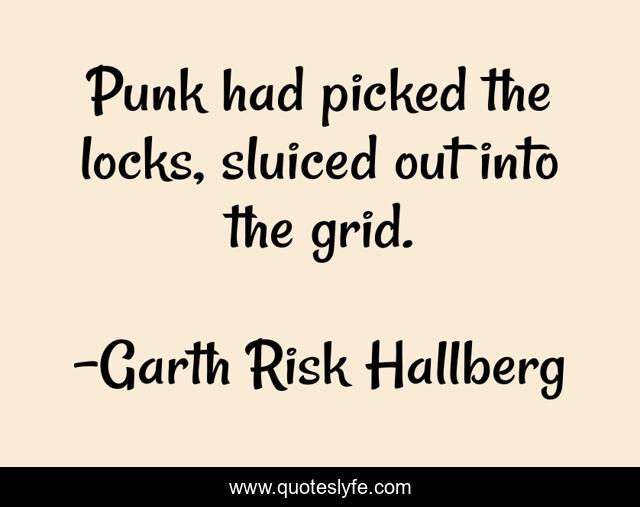 This page presents the quote "Punk had picked the locks, sluiced out into the grid.". Author of this quote is Garth Risk Hallberg. This quote is about music, punk, locks, grid, picked, nyc,.