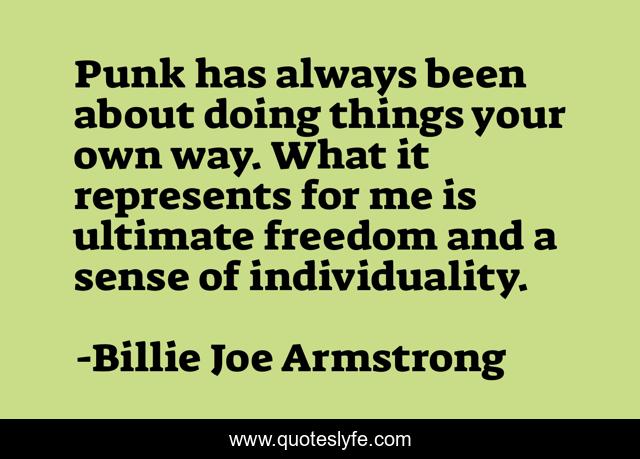 This page presents the quote "Punk has always been about doing things your own way. What it represents for me is ultimate freedom and a sense of individuality.". Author of this quote is Billie Joe Armstrong. This quote is about me, way,.