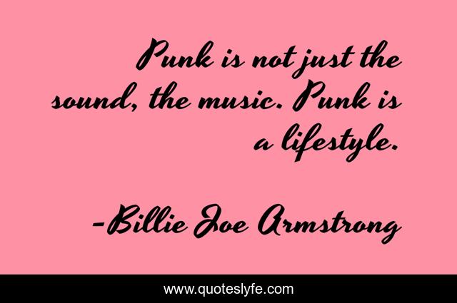 This page presents the quote "Punk is not just the sound, the music. Punk is a lifestyle.". Author of this quote is Billie Joe Armstrong. This quote is about sound, punk, lifestyle,.