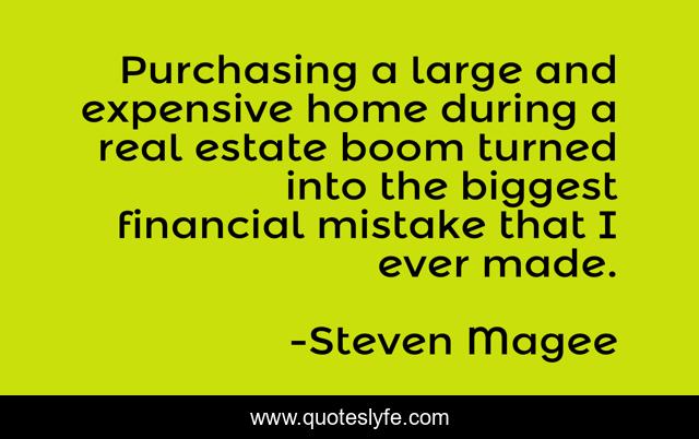 This page presents the quote "Purchasing a large and expensive home during a real estate boom turned into the biggest financial mistake that I ever made.". Author of this quote is Steven Magee. This quote is about real, made, financial, estate, turned, purchasing, large, boom, biggest,.