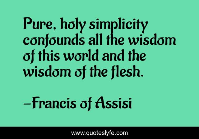This page presents the quote "Pure, holy simplicity confounds all the wisdom of this world and the wisdom of the flesh.". Author of this quote is Francis of Assisi. This quote is about simplicity, pure, world,.