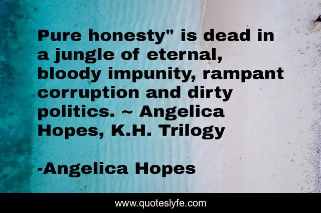 This page presents the quote "Pure honesty" is dead in a jungle of eternal, bloody impunity, rampant corruption and dirty politics. ~ Angelica Hopes, K.H. Trilogy". Author of this quote is Angelica Hopes. This quote is about honesty, politics, corruption, impunity,.