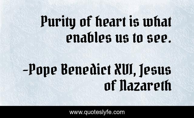 "Pope Benedict XVI, Jesus of Nazareth Quotes." Quoteslyfe.com, 2025. Fri. 05 Dec. 2025. <https://www.quoteslyfe.com/quote/Purity-of-heart-is-what-enables-us-9455>.