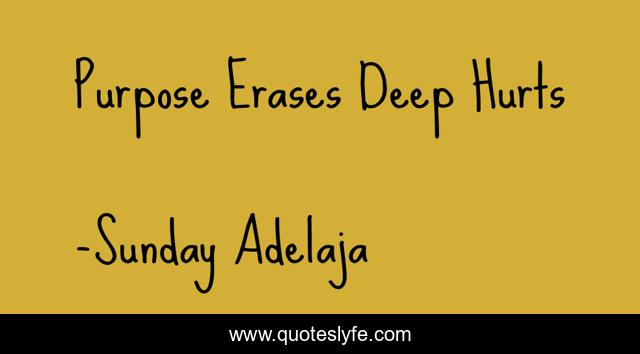 This page presents the quote "Purpose Erases Deep Hurts". Author of this quote is Sunday Adelaja. This quote is about erase, purpose, deep, hurt,.