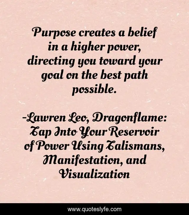 "Lawren Leo, Dragonflame: Tap Into Your Reservoir of Power Using Talismans, Manifestation, and Visualization Quotes." Quoteslyfe.com, 2025. Fri. 05 Dec. 2025. <https://www.quoteslyfe.com/quote/Purpose-creates-a-belief-in-a-higher-215394>.
