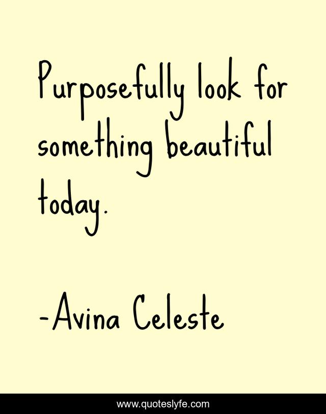 "Avina Celeste Quotes." Quoteslyfe.com, 2025. Sat. 06 Dec. 2025. <https://www.quoteslyfe.com/quote/Purposefully-look-for-something-beautiful-today-36300>.