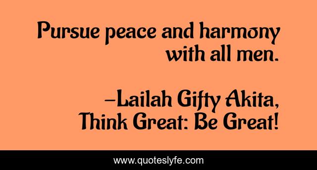 "Lailah Gifty Akita, Think Great: Be Great! Quotes." Quoteslyfe.com, 2025. Fri. 05 Dec. 2025. <https://www.quoteslyfe.com/quote/Pursue-peace-and-harmony-with-all-men-73896>.