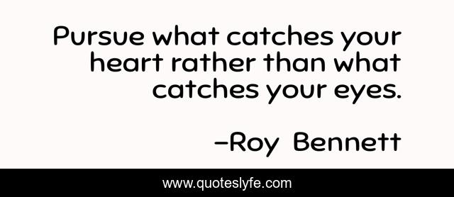 This page presents the quote "Pursue what catches your heart rather than what catches your eyes.". Author of this quote is Roy Bennett. This quote is about heart, life, wise, wisdom, inspirational, enthusiasm, inspiration,.