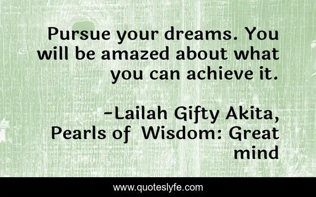 "Lailah Gifty Akita, Pearls of Wisdom: Great mind Quotes." Quoteslyfe.com, 2025. Mon. 08 Dec. 2025. <https://www.quoteslyfe.com/quote/Pursue-your-dreams-You-will-be-amazed-91894>.