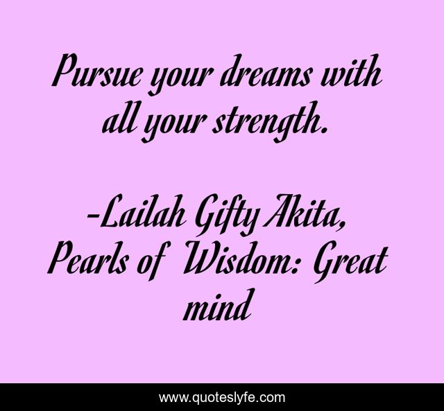 "Lailah Gifty Akita, Pearls of Wisdom: Great mind Quotes." Quoteslyfe.com, 2025. Mon. 08 Dec. 2025. <https://www.quoteslyfe.com/quote/Pursue-your-dreams-with-all-your-strength-130335>.