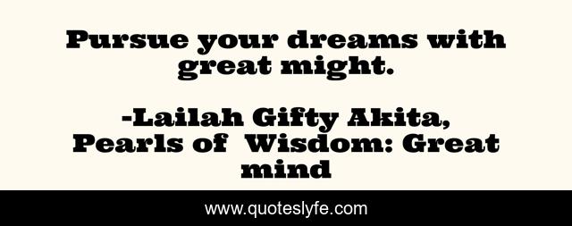 "Lailah Gifty Akita, Pearls of Wisdom: Great mind Quotes." Quoteslyfe.com, 2025. Mon. 08 Dec. 2025. <https://www.quoteslyfe.com/quote/Pursue-your-dreams-with-great-might-92846>.