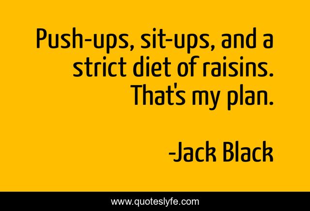 This page presents the quote "Push-ups, sit-ups, and a strict diet of raisins. That's my plan.". Author of this quote is Jack Black. This quote is about strict, plan, push-ups,.