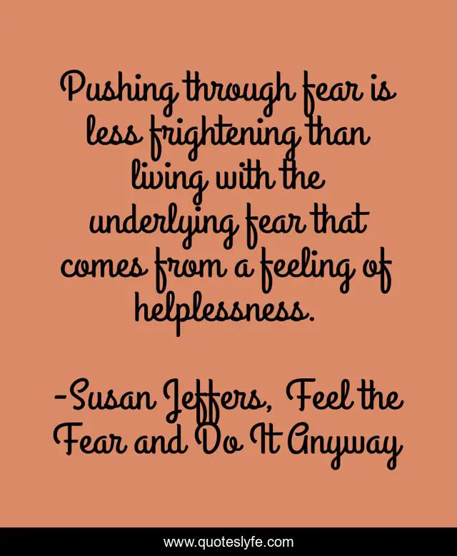 "Susan Jeffers, Feel the Fear and Do It Anyway Quotes." Quoteslyfe.com, 2025. Sat. 06 Dec. 2025. <https://www.quoteslyfe.com/quote/Pushing-through-fear-is-less-frightening-than-45697>.