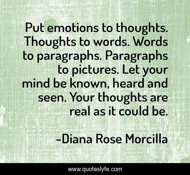 "Diana Rose Morcilla Quotes." Quoteslyfe.com, 2025. Mon. 08 Dec. 2025. <https://www.quoteslyfe.com/quote/Put-emotions-to-thoughts-Thoughts-to-words-103926>.