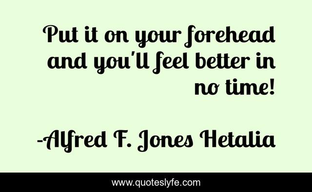 This page presents the quote "Put it on your forehead and you'll feel better in no time!". Author of this quote is Alfred F. Jones Hetalia. .