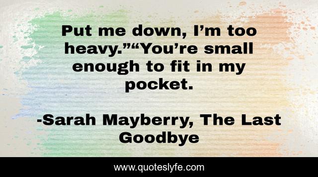"Sarah Mayberry, The Last Goodbye Quotes." Quoteslyfe.com, 2025. Mon. 08 Dec. 2025. <https://www.quoteslyfe.com/quote/Put-me-down-I-m-too-heavy-18214>.