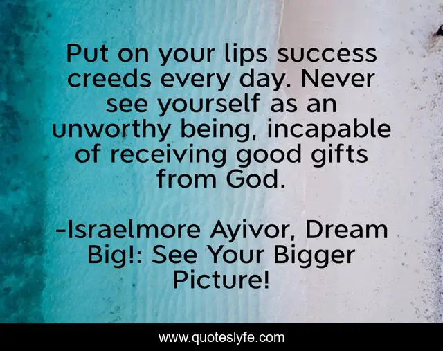 "Israelmore Ayivor, Dream Big!: See Your Bigger Picture! Quotes." Quoteslyfe.com, 2025. Fri. 05 Dec. 2025. <https://www.quoteslyfe.com/quote/Put-on-your-lips-success-creeds-every-129500>.