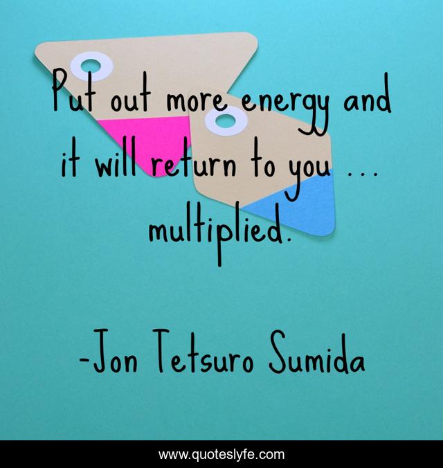 This page presents the quote "Put out more energy and it will return to you ... multiplied.". Author of this quote is Jon Tetsuro Sumida. .