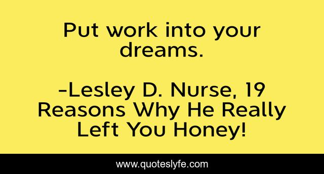 "Lesley D. Nurse, 19 Reasons Why He Really Left You Honey! Quotes." Quoteslyfe.com, 2025. Sun. 07 Dec. 2025. <https://www.quoteslyfe.com/quote/Put-work-into-your-dreams-53179>.