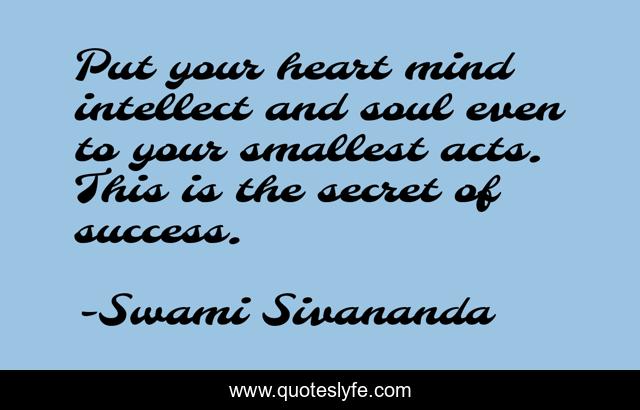 This page presents the quote "Put your heart mind intellect and soul even to your smallest acts. This is the secret of success.". Author of this quote is Swami Sivananda. .