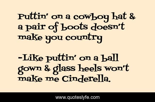 "Like puttin’ on a ball gown & glass heels won’t make me Cinderella. Quotes." Quoteslyfe.com, 2025. Mon. 08 Dec. 2025. <https://www.quoteslyfe.com/quote/Puttin-on-a-cowboy-hat-a-pair-258368>.