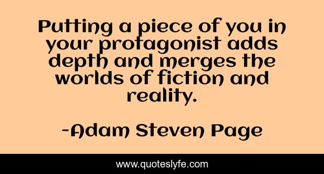 This page presents the quote "Putting a piece of you in your protagonist adds depth and merges the worlds of fiction and reality.". Author of this quote is Adam Steven Page. This quote is about writing, writers-on-writing, author, protagonist, writers-life,.