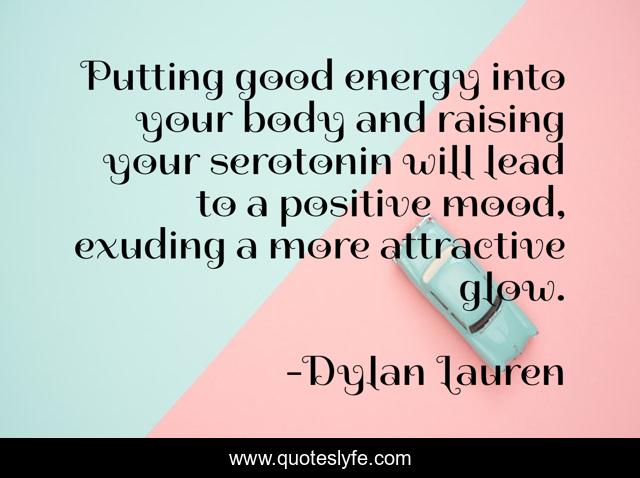 This page presents the quote "Putting good energy into your body and raising your serotonin will lead to a positive mood, exuding a more attractive glow.". Author of this quote is Dylan Lauren. This quote is about body, energy, good,.