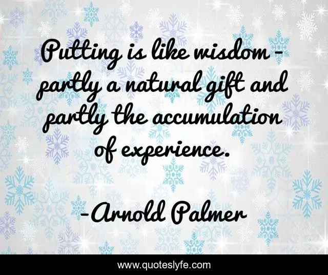 This page presents the quote "Putting is like wisdom - partly a natural gift and partly the accumulation of experience.". Author of this quote is Arnold Palmer. This quote is about natural, gift, wisdom,.