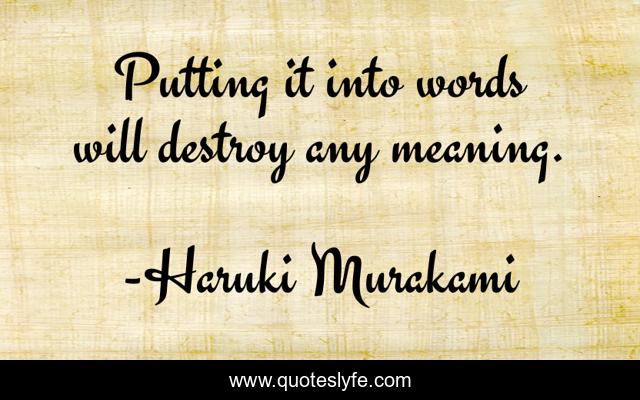 "Haruki Murakami Quotes." Quoteslyfe.com, 2025. Fri. 05 Dec. 2025. <https://www.quoteslyfe.com/quote/Putting-it-into-words-will-destroy-any-142375>.