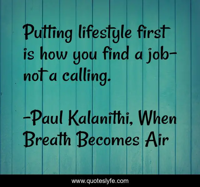 This page presents the quote "Putting lifestyle first is how you find a job- not a calling.". Author of this quote is Paul Kalanithi, When Breath Becomes Air. .
