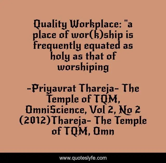 "Priyavrat Thareja- The Temple of TQM, OmniScience, Vol 2, No 2 (2012)Thareja- The Temple of TQM, Omn Quotes." Quoteslyfe.com, 2025. Fri. 05 Dec. 2025. <https://www.quoteslyfe.com/quote/Quality-Workplace-a-place-of-wor-k-193932>.