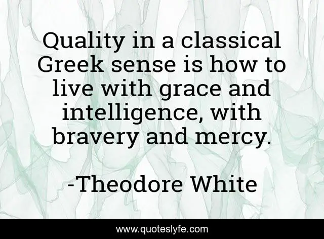 This page presents the quote "Quality in a classical Greek sense is how to live with grace and intelligence, with bravery and mercy.". Author of this quote is Theodore White. This quote is about quality, grace, bravery,.
