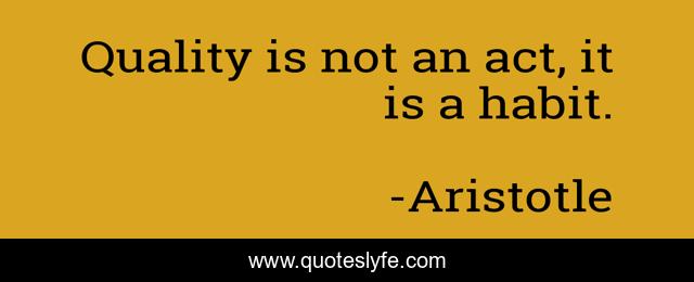 This page presents the quote "Quality is not an act, it is a habit.". Author of this quote is Aristotle. This quote is about habit, quality, act,.