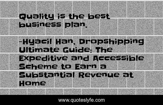 "Hyacil Han, Dropshipping Ultimate Guide: The Expeditive and Accessible Scheme to Earn a Substantial Revenue at Home Quotes." Quoteslyfe.com, 2025. Tue. 09 Dec. 2025. <https://www.quoteslyfe.com/quote/Quality-is-the-best-business-plan-80207>.