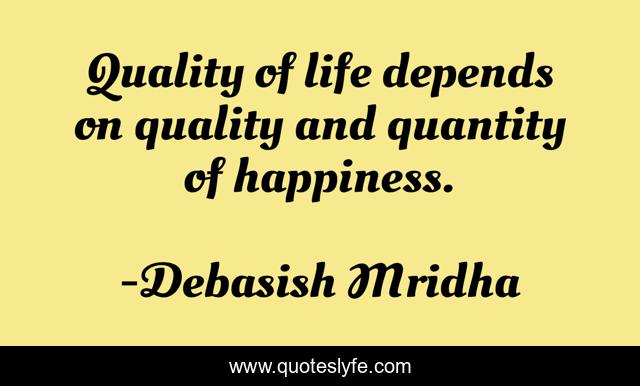 This page presents the quote "Quality of life depends on quality and quantity of happiness.". Author of this quote is Debasish Mridha. This quote is about quality-of-life, life, inspirational, philosophy, debasish-mridha, quotes, quantity-of-happiness, enthusiasm, debasish-mridha-m-d,.