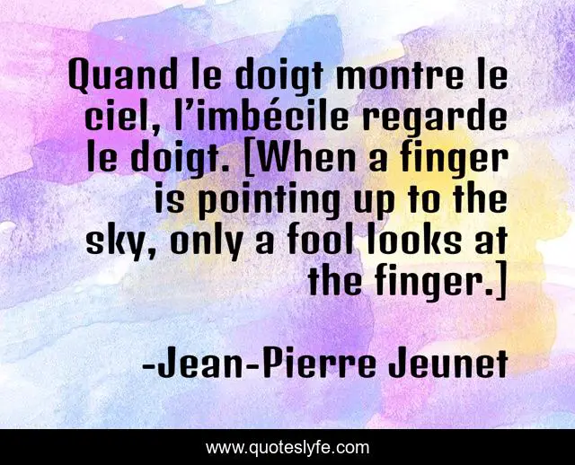 "Jean-Pierre Jeunet Quotes." Quoteslyfe.com, 2025. Fri. 05 Dec. 2025. <https://www.quoteslyfe.com/quote/Quand-le-doigt-montre-le-ciel-l-153985>.