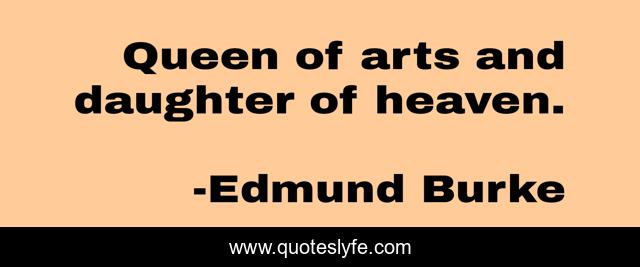 This page presents the quote "Queen of arts and daughter of heaven.". Author of this quote is Edmund Burke. .