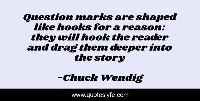 "Chuck Wendig Quotes." Quoteslyfe.com, 2025. Sat. 06 Dec. 2025. <https://www.quoteslyfe.com/quote/Question-marks-are-shaped-like-hooks-for-146615>.