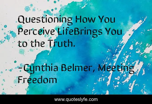 This page presents the quote "Questioning How You Perceive LifeBrings You to the Truth.". Author of this quote is Cynthia Belmer, Meeting Freedom. .