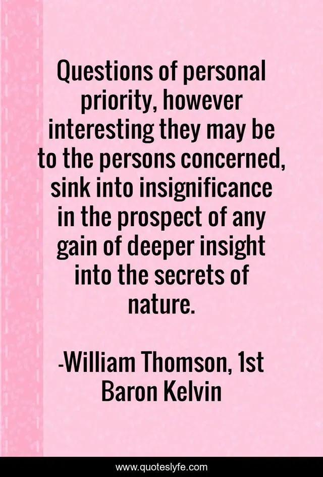 "William Thomson, 1st Baron Kelvin Quotes." Quoteslyfe.com, 2025. Fri. 05 Dec. 2025. <https://www.quoteslyfe.com/quote/Questions-of-personal-priority-however-interesting-they-212360>.