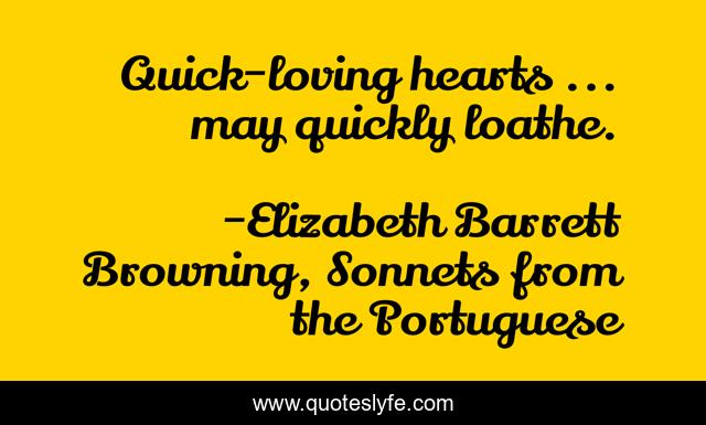 "Elizabeth Barrett Browning, Sonnets from the Portuguese Quotes." Quoteslyfe.com, 2025. Mon. 08 Dec. 2025. <https://www.quoteslyfe.com/quote/Quick-loving-hearts-may-quickly-loathe-92266>.