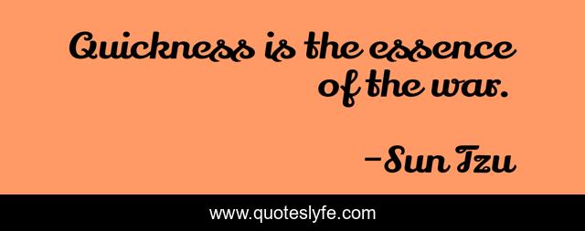 This page presents the quote "Quickness is the essence of the war.". Author of this quote is Sun Tzu. This quote is about essence, quickness,.
