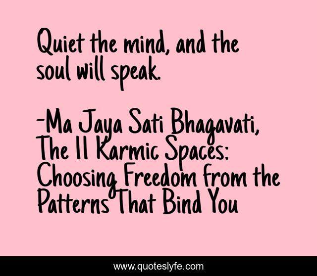 "Ma Jaya Sati Bhagavati, The 11 Karmic Spaces: Choosing Freedom from the Patterns That Bind You Quotes." Quoteslyfe.com, 2025. Mon. 08 Dec. 2025. <https://www.quoteslyfe.com/quote/Quiet-the-mind-and-the-soul-will-43988>.