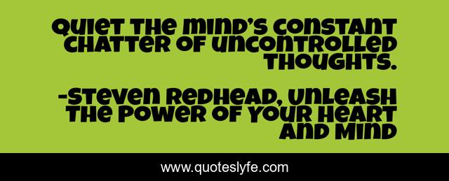 This page presents the quote "Quiet the mind’s constant chatter of uncontrolled thoughts.". Author of this quote is Steven Redhead, Unleash The Power of Your Heart and Mind. This quote is about thought, mind, uncontrolled,.