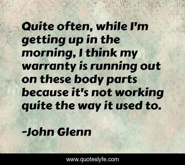 This page presents the quote "Quite often, while I'm getting up in the morning, I think my warranty is running out on these body parts because it's not working quite the way it used to.". Author of this quote is John Glenn. This quote is about body, think, working,.