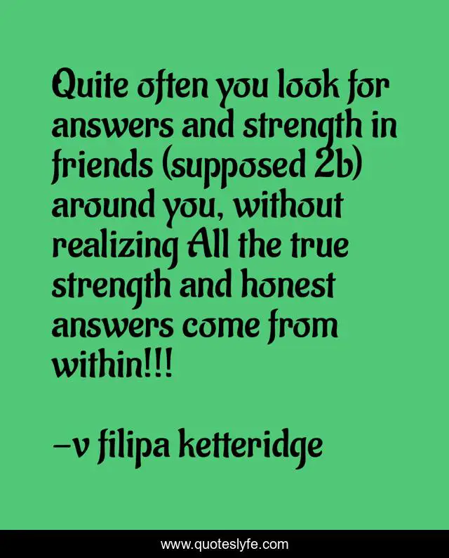 This page presents the quote "Quite often you look for answers and strength in friends (supposed 2b) around you, without realizing All the true strength and honest answers come from within!!!". Author of this quote is v filipa ketteridge. .