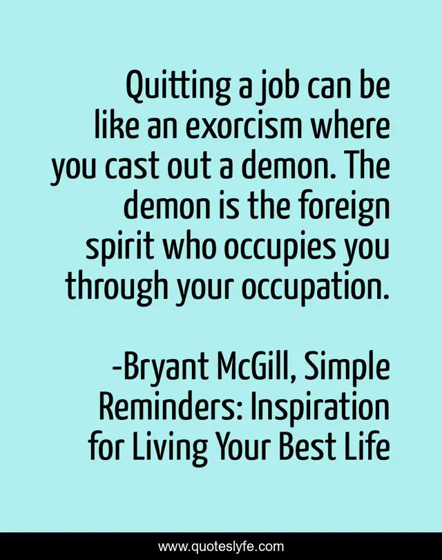 Quitting a job can be like an exorcism where you cast out a demon. The demon is the foreign spirit who occupies you through your occupation.