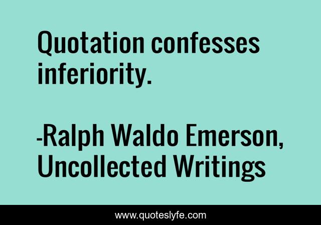 "Ralph Waldo Emerson, Uncollected Writings Quotes." Quoteslyfe.com, 2025. Fri. 05 Dec. 2025. <https://www.quoteslyfe.com/quote/Quotation-confesses-inferiority-22257>.
