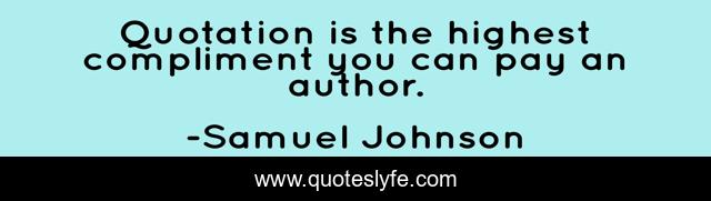 This page presents the quote "Quotation is the highest compliment you can pay an author.". Author of this quote is Samuel Johnson. .